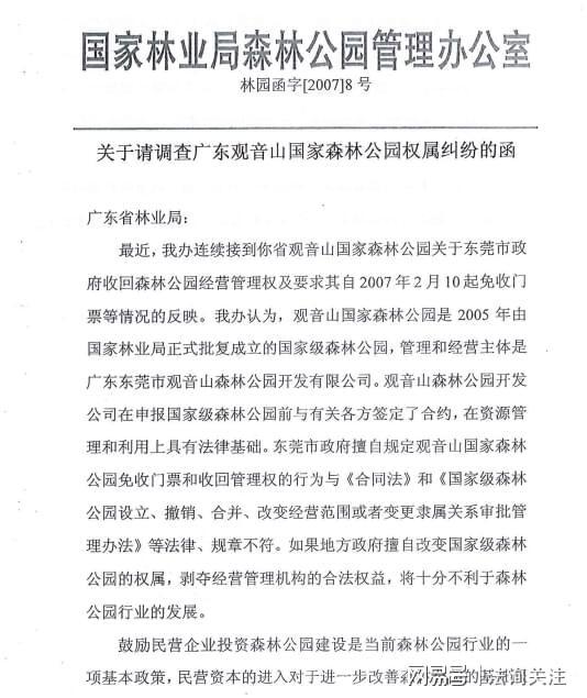 广东观音山国家森林公园:撤销自然保护地于法无据 全国首家民营国家级森林公园广东观音山国家森林公园:自然保护地予以保留有法可依 文/郑义 海波 近日,东莞市观音山森林公园开发有限公司向广东省人民政府特快专递了《全国首家民营国家级森林公园广东观音山国家森林公园关于恳请作为自然保护地予以保留的紧急情况反映》。该信函是对观音山森林公园在不知情的情况下拟被撤销自然保护地的情况反映,也反映了南中国旅游胜地、首家民营国家级森林公园遭遇地方打压的无奈呼吁。